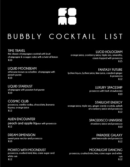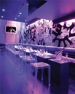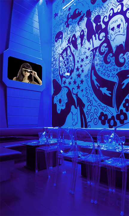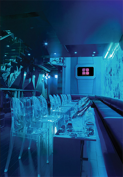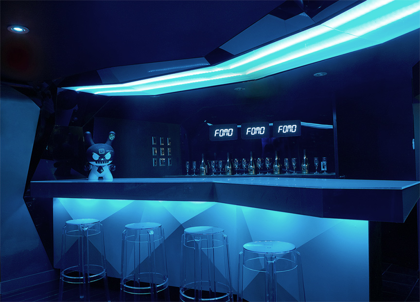 A boutique champagne lounge in downtown Toronto, with a ‘fantasy-luxury-spaceship’ inspired decor.